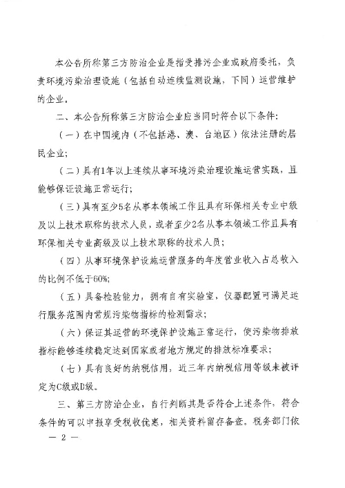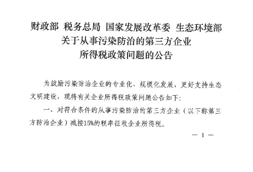 关于从事污染防治的第三方企业所得税政策问题的公告