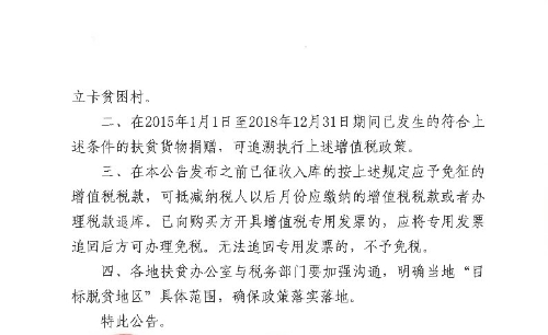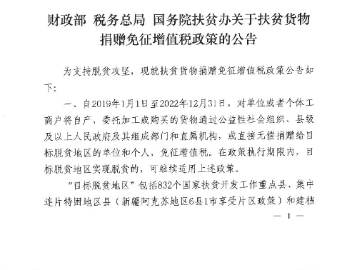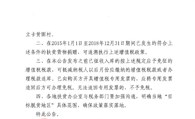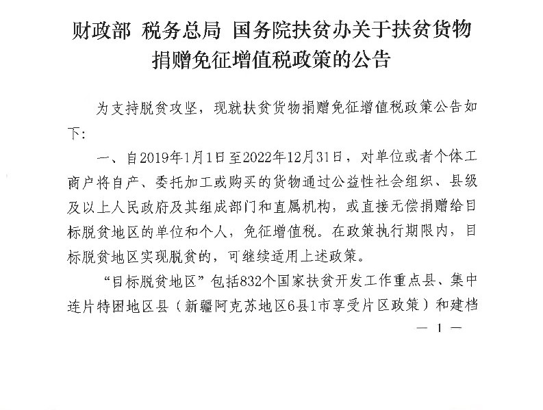关于扶贫货物捐赠免征增值税政策的公告