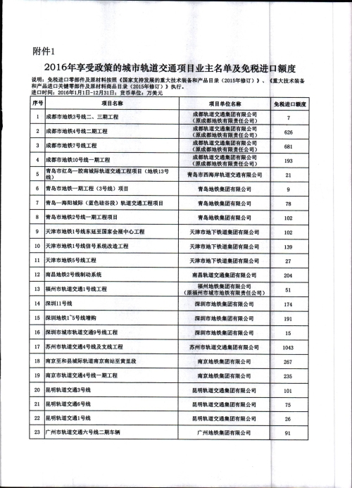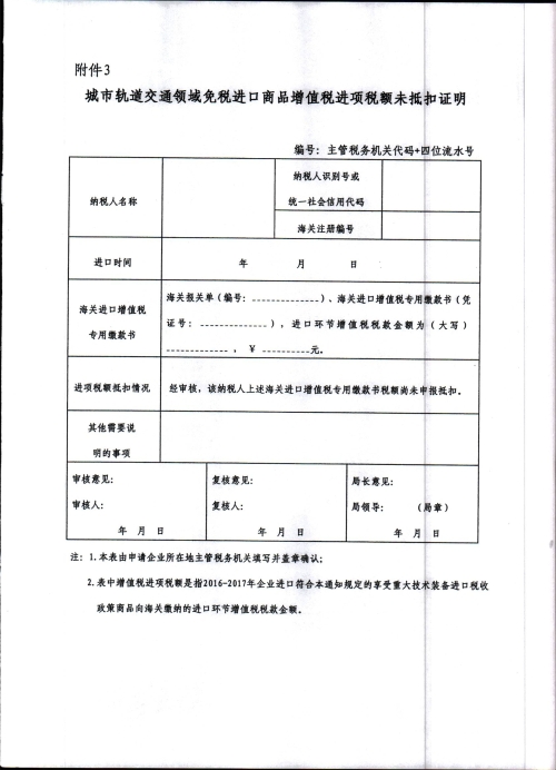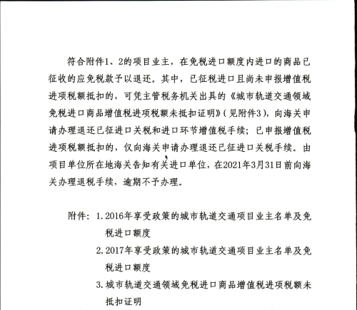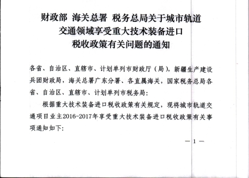 关于城市轨道交通领域享受重大技术装备进口税收政策有关问题的通知